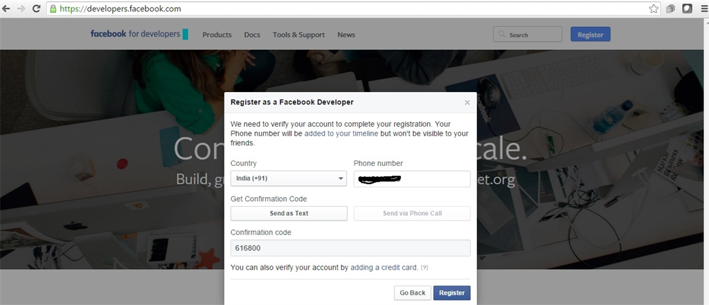 In order to get an App Id and Secret key we need to register a new application
