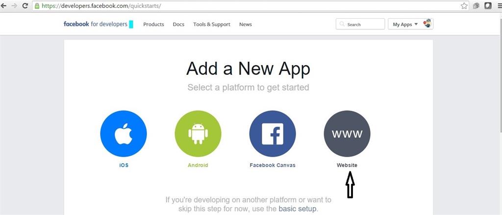 Visit Facebook Developer Page as in the following screenshot: