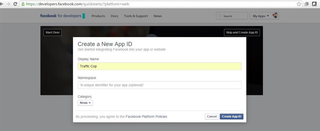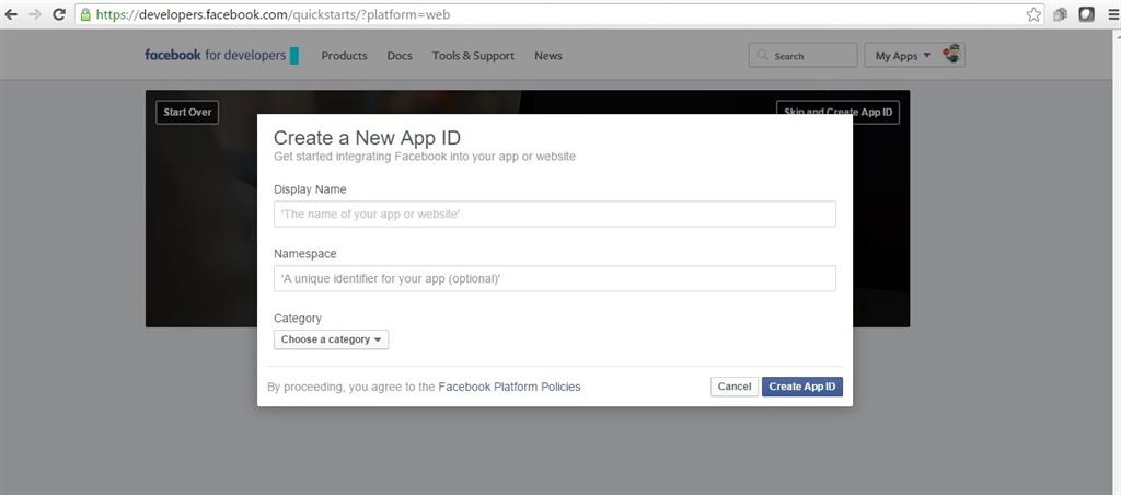 Steps to create Facebook App to receive App Id and Secret Key