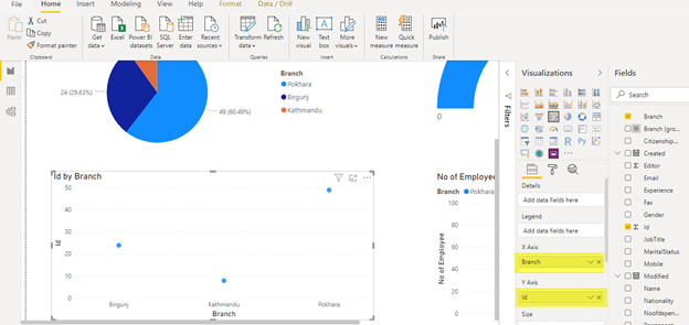 Drag Branch column to X-Axis and Id to Y-Axis, as depicted below.