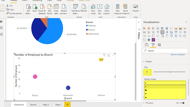 Additionally, you can change the shape of the marker by selecting from the dropdown options.