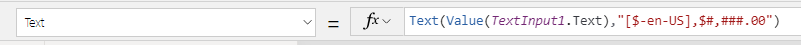 Text(Value(TextInput1.Text),"[$-en-US],$#,###.00")