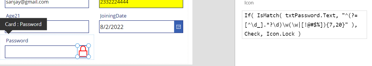 If(IsMatch(txtPassword.Text, "^(?=[^\d_].*?\d)\w(\w|[!@#$%]){7,20}"), Check, Icon.Lock)