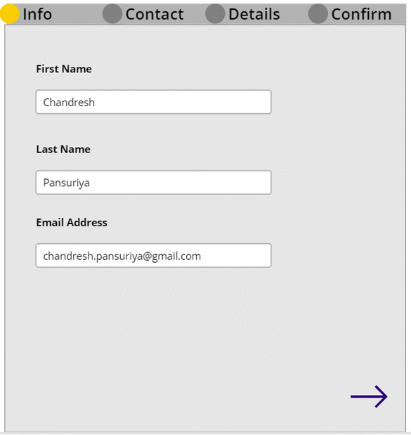 Now, it’s time to use this component in the PowerApps screen. I’ve created four PowerApps screens like Info, Contact, Details, and Confirm for this session. Add HorizontalProgressBar component on each screen from the Custom menu and set the ActiveStep property 1,2,3 and 4 id for each screen.