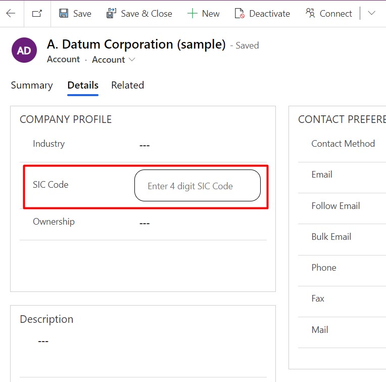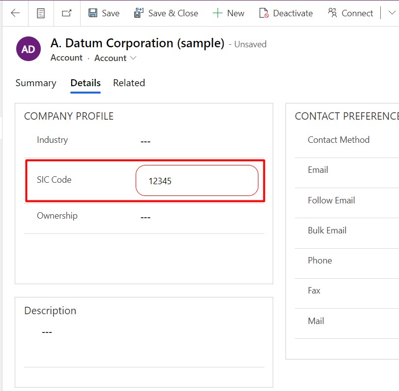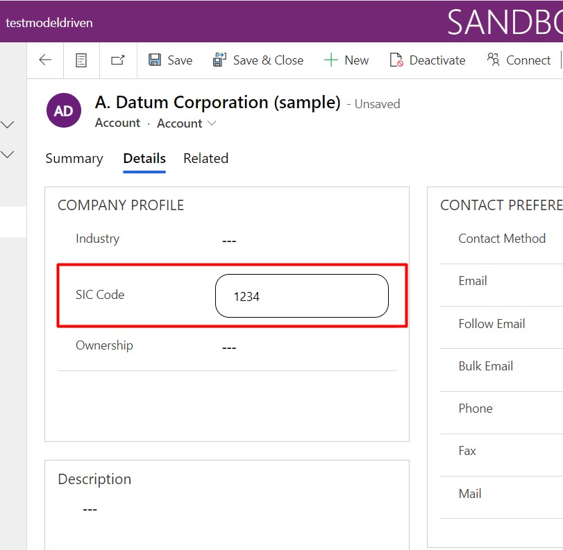 When Model-driven app is opened, and any person account record is selected then “SIC Code” column will now look like this.