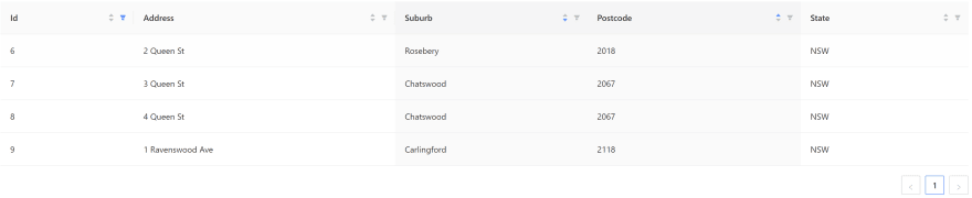 ('1 Elizabeth Rd', 'Sydney', '2000', 'NSW'),