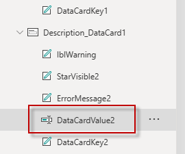 Here the ‘Description_DataCard1’ has a text property that holds the text called ‘DataCardValue2’.