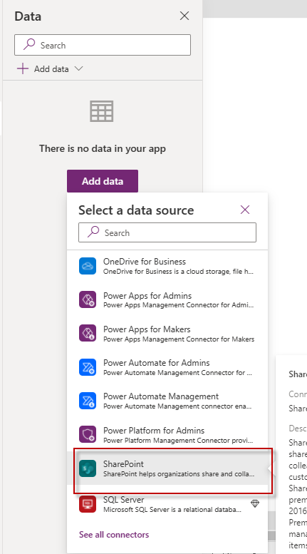 Since we are connecting to the SPO list, let's try connecting to the SPO list using data.