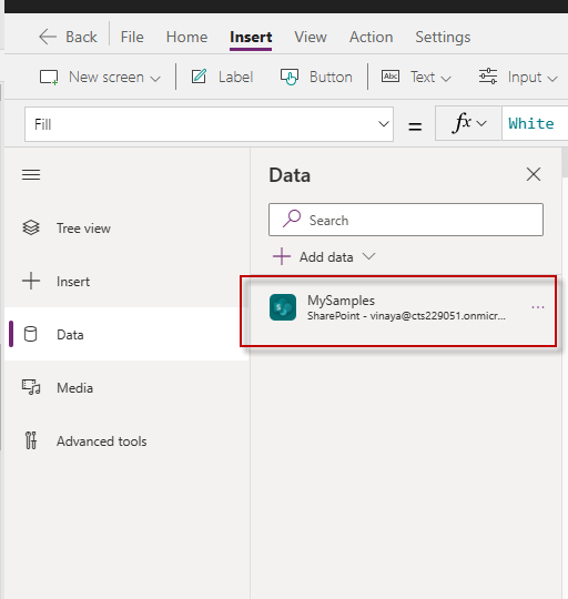 Validate the Data tab and your list should appear there. In my case, it is the ‘MySamples’ list.