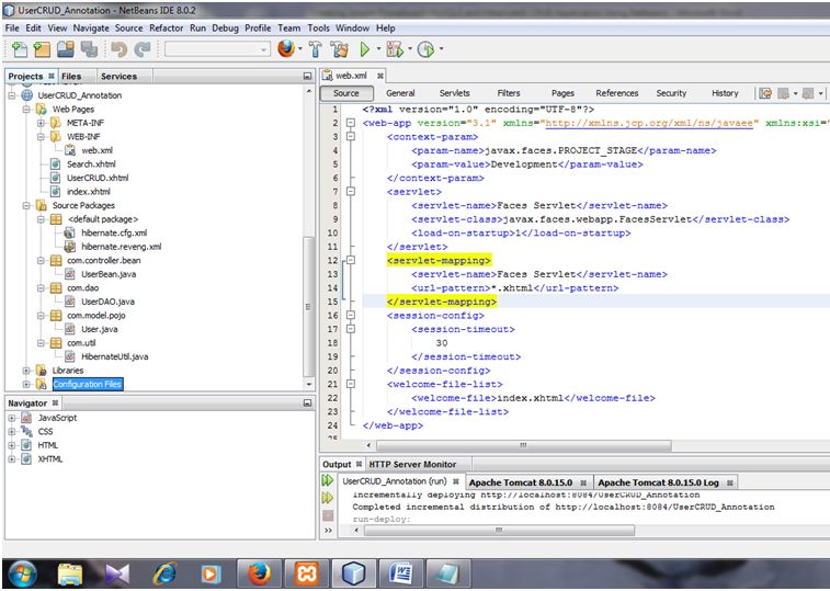 - UserCrud.xhtml: It is an independent file to be run independently by selecting it in TOC and running it by Run(From Menu): Run File