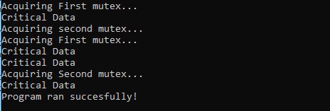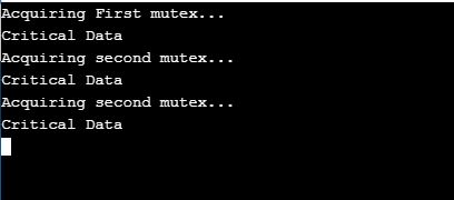 You create a mutex by instantiating std::mutex, lock it with a call to the member function lock()and unlock it with a call to unlock(). The mutex lock makes sure that once one thread finishes the modification, only then another thread modifies the data. Now, try executing the same above program and see if you get the same expected output each time or not. Here’s the output I got on my system.
