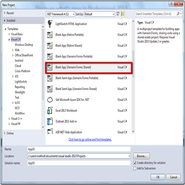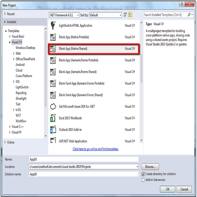 - Blank App, using Xamarin.IOS or Xamarin.Android are built, using Xamarin SCL.
