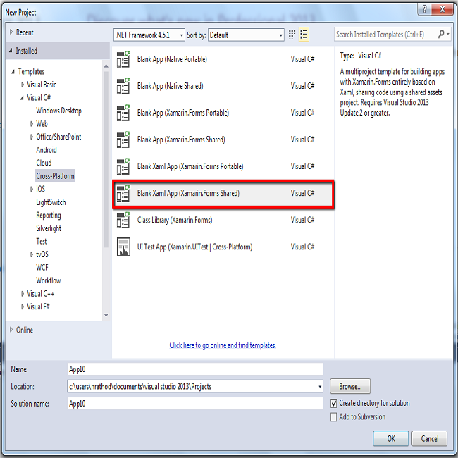 Blank XAML app (Xamarin.Forms.Shared)