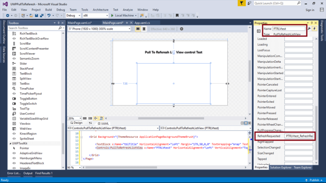 - <TextBlock x:Name="tblTitle" HorizontalAlignment="Left" Margin="179,50,0,0" TextWrapping="Wrap" Text="Pull To Referesh List View control Test" VerticalAlignment="Top" FontSize="18" FontWeight="Bold" />