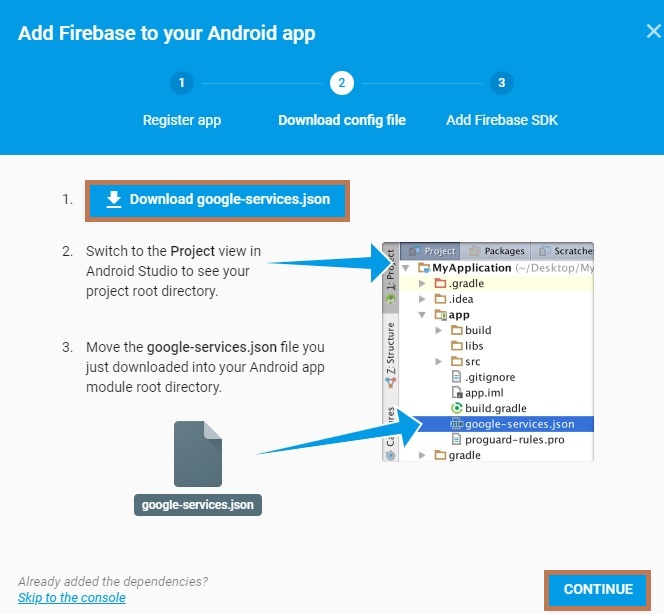You will download a Google-services.json file that just moves the downloaded google-services file into an android app.