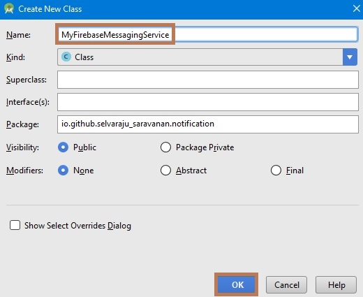 Next, go to app >> Java >> package name >> New Java Class. Select the Java Class. Just use the following code.