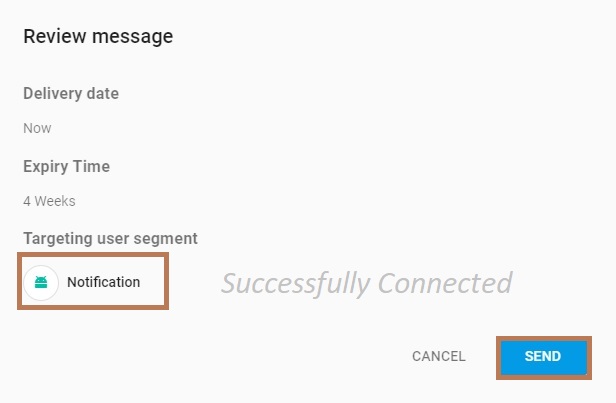 Review your message and user segment -- you have successfully connected your app.