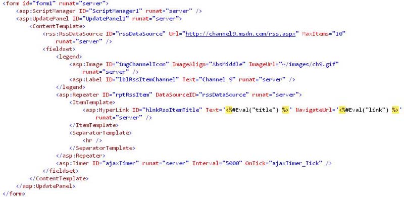 This is a simple example of Timer can be used in conjunction with UpdatePanel. Also it shows that you can maintain ViewState across page postbacks. It gives you an small idea about the wonderful RssToolKit and how to put this all together to achieve real usage scenario.