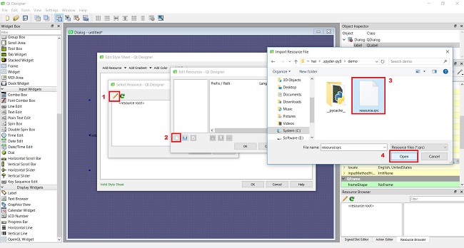 In PyQt5, the Qt designer requires a Resource file for fetching and displaying an image on the form. After choosing the background-image option, we need to follow the below instructions to find the resource file and display it on the form.