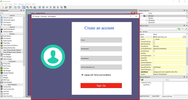 In this article, we learned how to create a simple and attractive registration form by using Qt Designer. I hope you understood this very well. If you have any difficulties while doing the above, please leave a comment below.