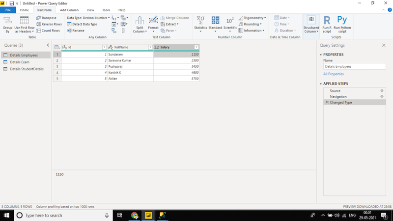 If we want to undo the changes, then just click the cross icon in the Removed Columns step. The Salary Column will be added back into the Query Editor.