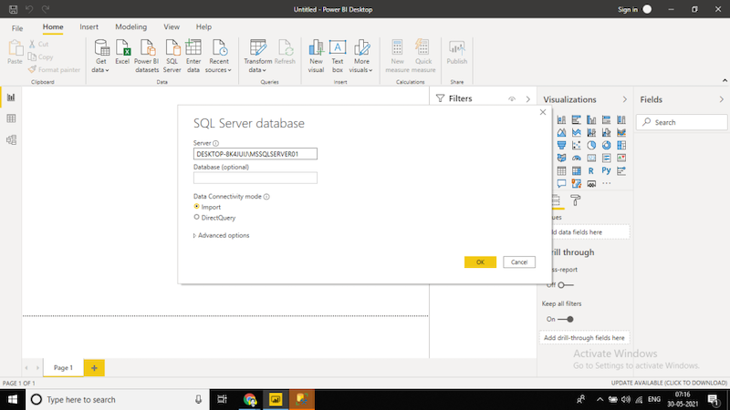 Fig. 1 Connecting Power BI with SQL Server Data Source