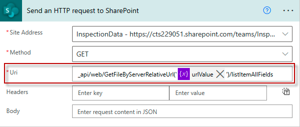 Here you will use the ‘fx’ expressions and then select the ‘body’ from the dynamic value and use the ‘?’ [select operator] to query the value. Since the GUID is under the body -> GUID the expression will look like below.