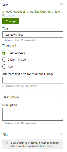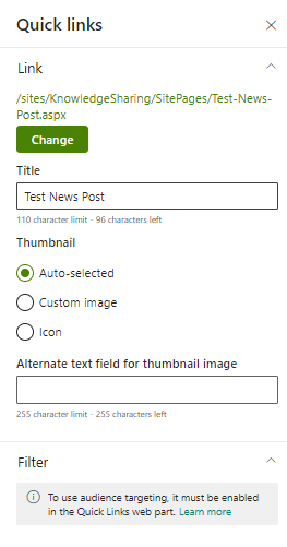 Adding Links to Quick Links Web Part in SharePoint Online Page