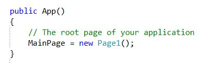 - Open App.cs file in Sample 1(Portable) projec, remove the code in App () creator and create an object forthe newly added page.