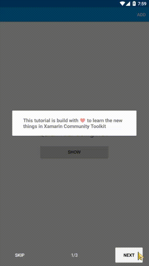 - Step 3: Implementation of Interactive Quick Tour using Xamarin Community Toolikit.