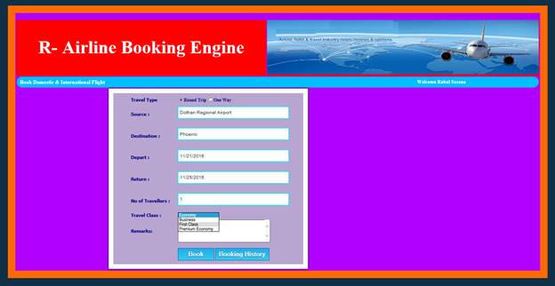 Here, in this article, I am going to explain the functionality of an online booking engine like we have in goibibo, yatra.com etc. In this project, you can book your airline ticket, can see your booking history, can make notifications, and can copy your previous travel details.