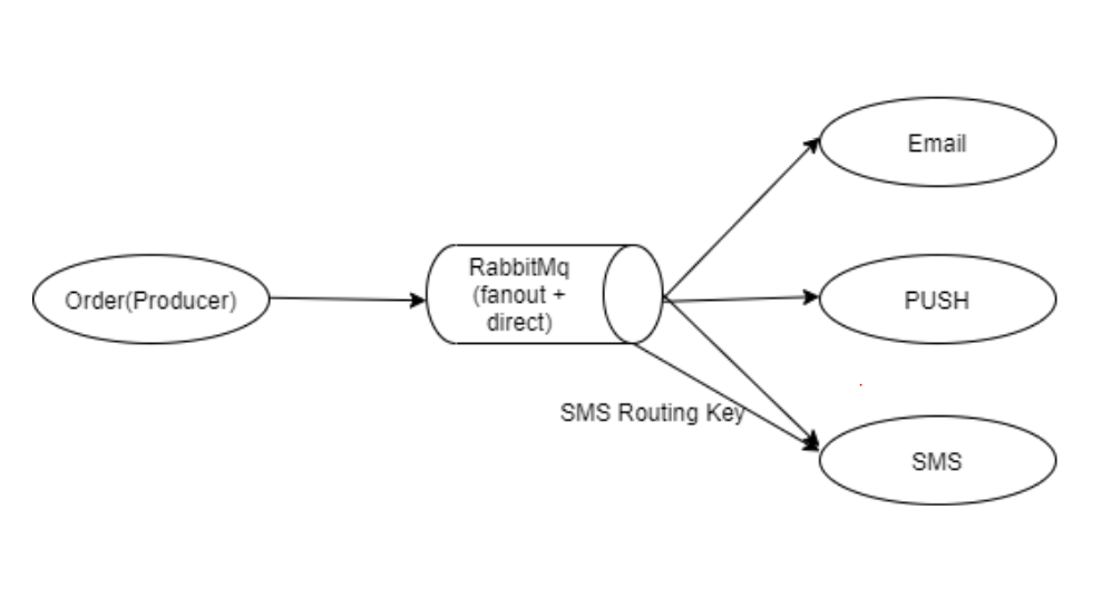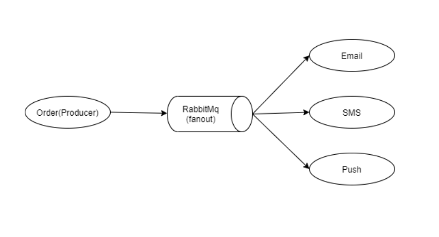 In my use case, I have configured my Email, Push, and SMS queue into my notification exchange using the fanout exchange type. So order service will push the messages into my notification exchange and the exchange will push the copy of the message into each queue by fanout exchange type. Notification services will send the confirmation message to end users via email, SMS, and Push.
