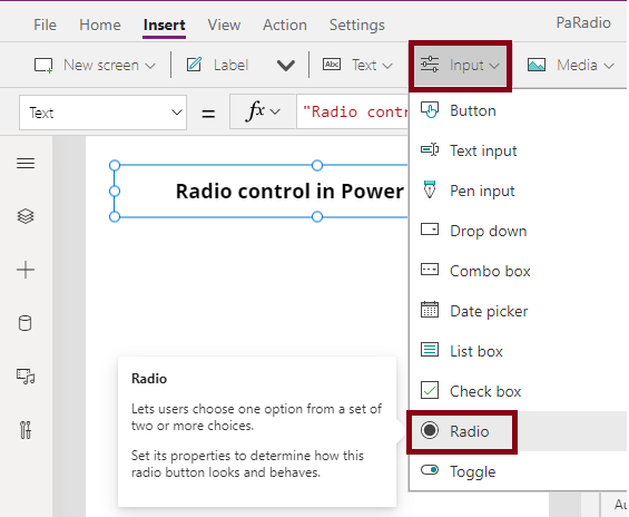 Reading this article, you can learn how to use Radio control in Microsoft Power Apps.