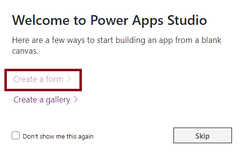 First, Click Create (+ ) and Select the Canvas app from blank.
