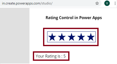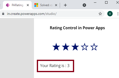 Now we can see the preview of your App in Power Apps Studio, and the output of the PARating is,