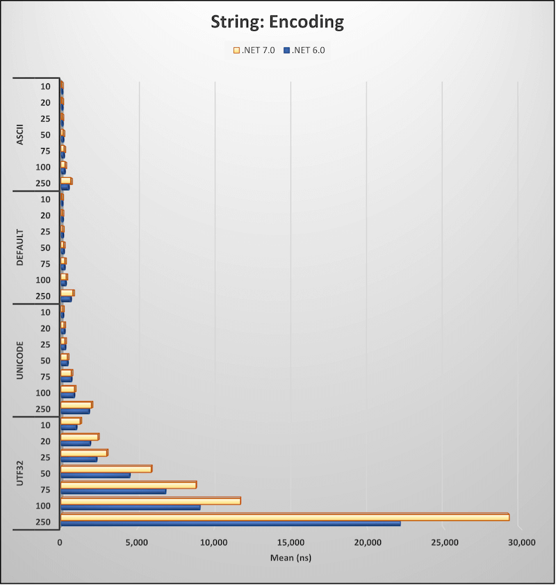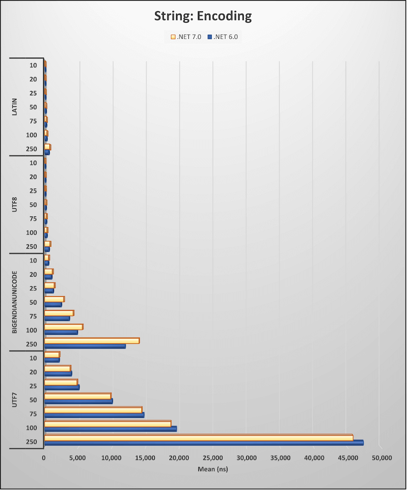 As mentioned above, using UTF-7 can be a performance issue. Let’s look at the performance of the different encodings. Here is a list of them: