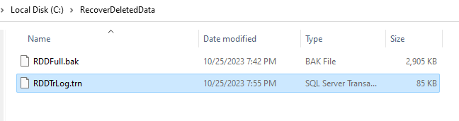 DISK = 'C:\RecoverDeletedData\RDDFull.bak'