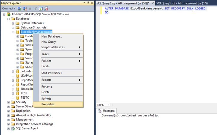 Let’s see how we can make the database Bulk model Logged.