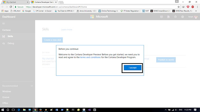 Click "Manage" in Cortana dashboard for the deploying process. Select " I accept" for the further process of it.