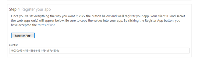 - Click on Register App. It will generate the Client ID. Copy the Client ID for Future reference.