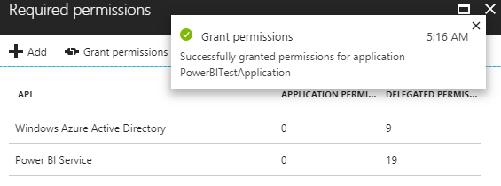 - Now, we need to have the following permissions for the Power BI app in Azure AD.