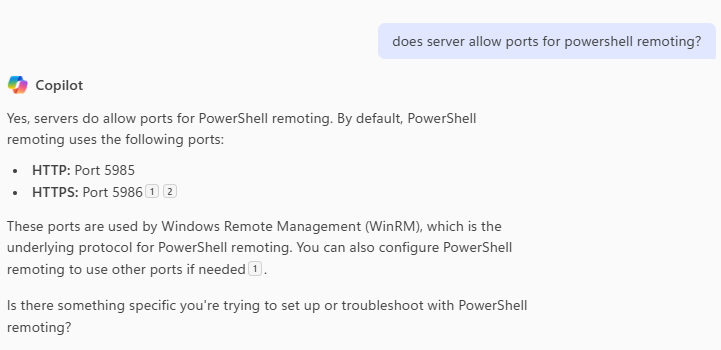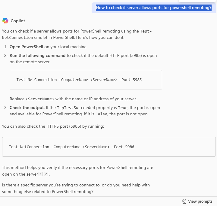 Instruction:"How to check if server allows ports for PowerShell remoting?"