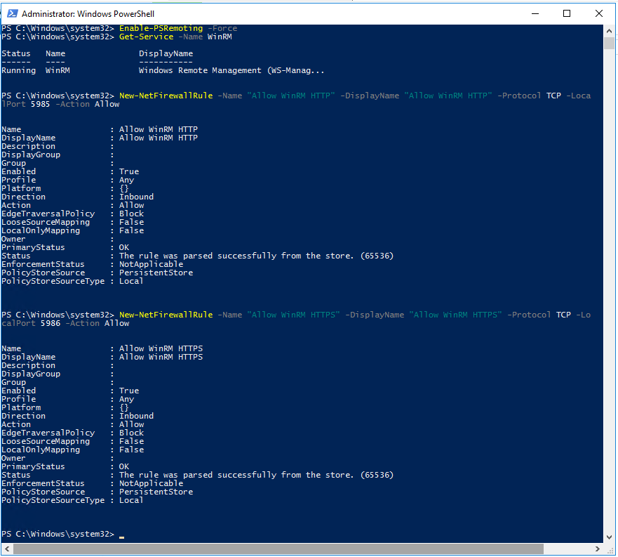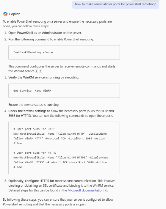 Instruction: "how to make server allows ports for PowerShell remoting?"