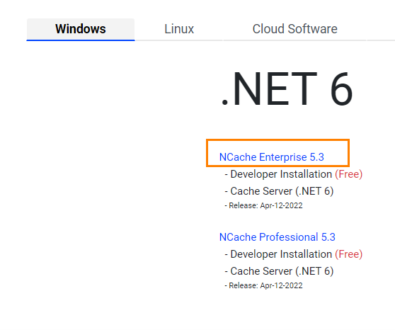 Download NCache from NCache Download Center (alachisoft.com). I highly recommend you to install the Enterprises edition so that you can explore all the features. Before the installation make sure .NET 6 has been installed in your machine.
