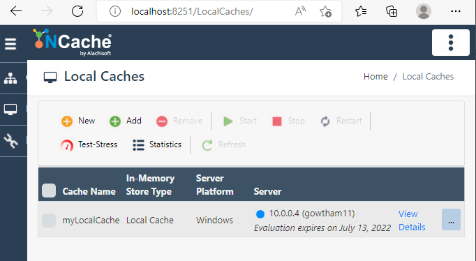 Click here to check how to create a local Cache using NCahce Web Manager.