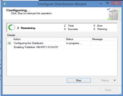 Here, in this case using everything in local Server. Hence the checkbox is checked. Click Next and check Configure distribution Option -> Finish.