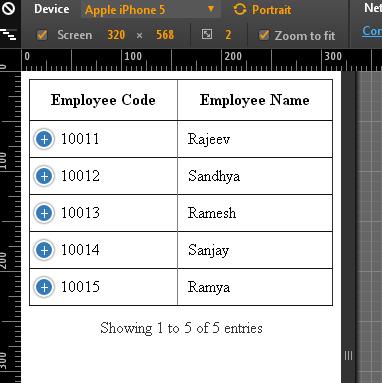 Now, we have to add a class "dt-responsive" in our table to make it responsive.