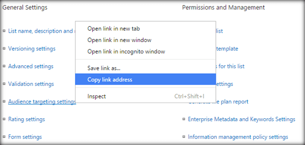 Note- You can get the List GUID by right clicking ‘Audience targeting settings’ from List settings.