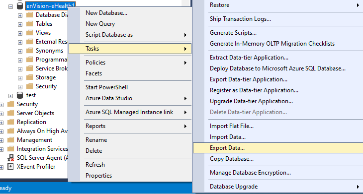 The restoring database is straightforward forward, and introduced in the previous article, we will demo the Export details: