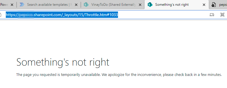- While running this operation, when accessing the site you might end up with a throttling message, and it goes away after 20 to 30 minutes.
